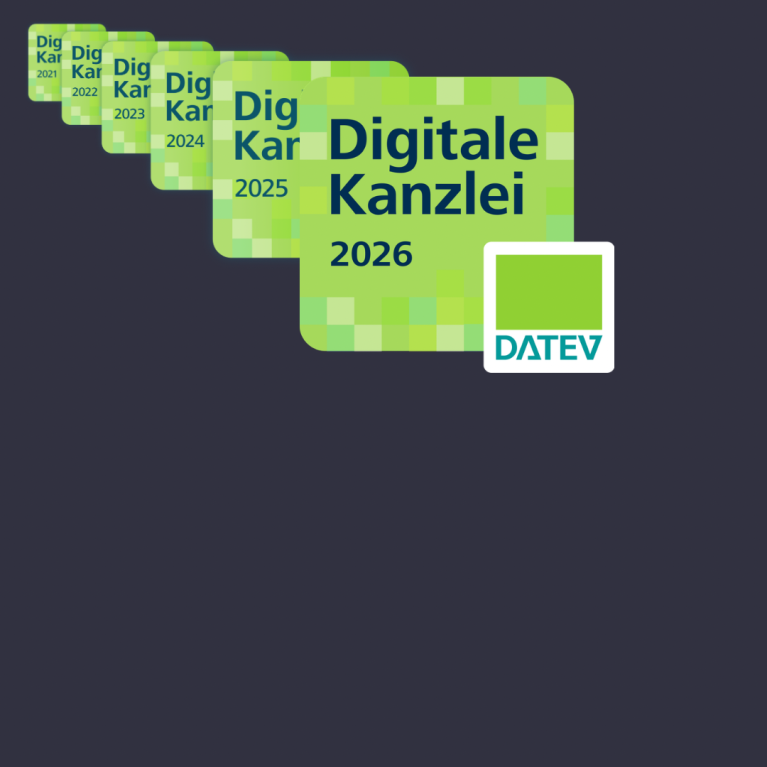 Wir haben einen weiteren Meilenstein beim Thema Digitalisierung in der Kanzlei erreicht. Die DATEV eG hat uns hierfür die Auszeichnung "DATEV Digitale Kanzlei" zum ersten Mal in 2021 verliehen. Für das Label haben wir unsere internen Prozesse weiter angepasst und unsere Mandanten bei der Digitalisierung der Buchhaltung unterstützt.